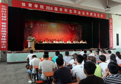 优秀毕业生体育教育系1202班岳粉燕同学代表2016届毕业生做了发言,她回顾了大学四年的美好生活,表达了对母校的感恩和留恋之情,并用“感恩、信念、信心”六字总结了她的老员工涯,并表示在以后的人生道路上会做得更好。最后祝愿母校青春常在,祝愿老师幸福安康,祝愿毕业生鹏程万里!