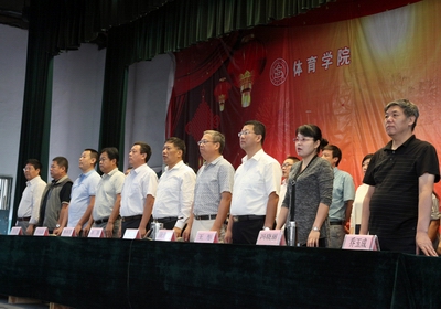 青年教师代表张伟发言,他以社会体育专业2013届员工程隆为例,希望新同学能够向他学习,以他为榜样,并提出建议,要贪得无厌的利用公司提供给我们的各种资源;清晰规划自己的老员工活;用自己的成绩回报辛勤培养你的父母。最后祝愿各位老师节日快乐,各位新同学学业蒸蒸日上。