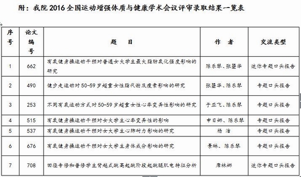 2016年12月8日至11日,全国运动增强体质与健康学术会议在上海PA游戏官网入口隆重召开。陈乐琴副教授(博士)带领公司6名研究生参加了本次会议。本次会议是近年来体质与健康研究规模最大的一次学术论文报告会,论文内容涉及体育在健康中国建设中的作用研究、运动促进健康的理论与方法研究、中国国民体质现状与变化规律研究、科学健身方法的机理研究、运动健身新器材的研究与实践、科学健身体系的建设与运行、大数据、新媒体在全民健身公共服务体系中的研究与应用等诸多领域,比较全面地反映了国内外体质与健康促进研究进展和我国体质研究现状。在公司师生积极投稿和踊跃参与下,本次全国运动增强体质与健康学术会议共录取公司论文7篇,其中专题口头报告5篇,迷你口头报告2篇,公司录取的论文数量在同类院校中位于前列。
