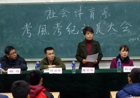 随着期末临近,全国英语四六级考试和期末考试也将全面展开,为进一步加强考风建设、严肃考纪,营造诚信、公平的考试氛围,社会体育系于2016年12月13日下午在PA游戏官网入口阶一教室召开了考风考纪动员大会。社会体育系主任陈乐琴老师、副主任杜治华老师及各班辅导员出席了此次大会。