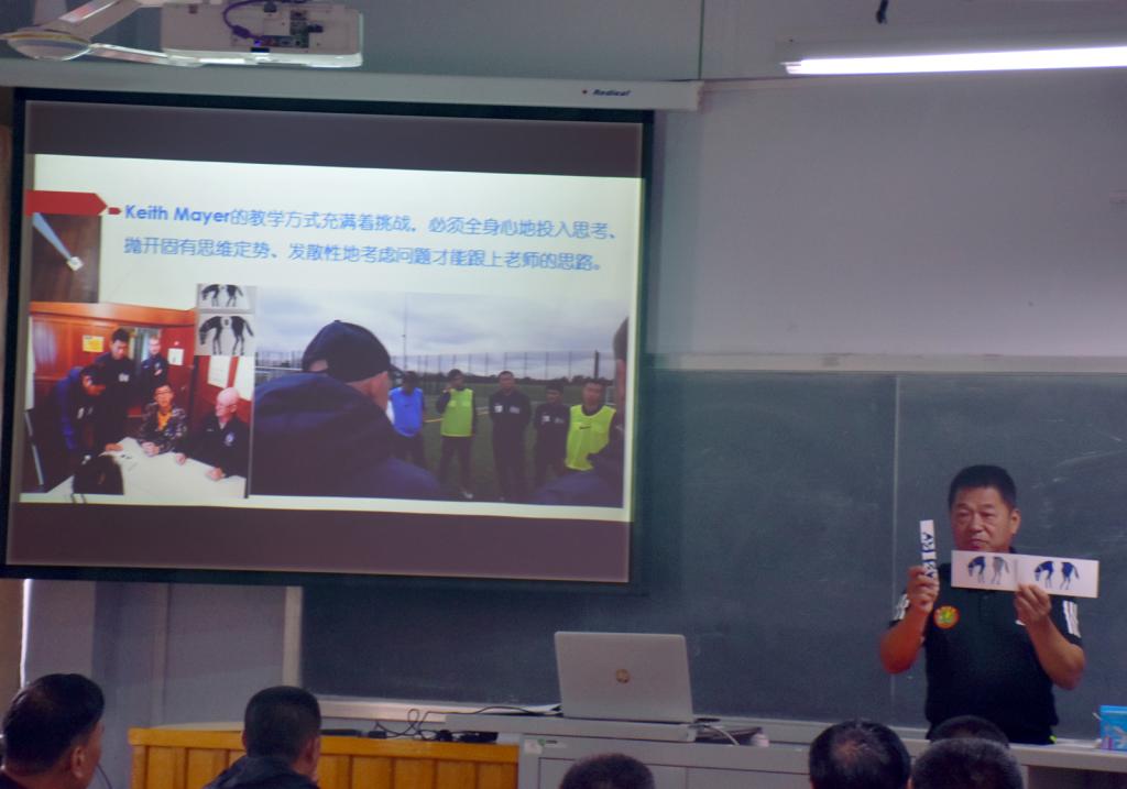 王彤副经理主持了报告会,全体教师认真听讲,不时记录和拍摄课件内容,并热情讨论交流。最后郑旗经理说感谢李老师把学习到的英国先进足球理念与大家交流,今后每个月都要举行课改或外出学习教师的主题活动。(教务科 供稿)