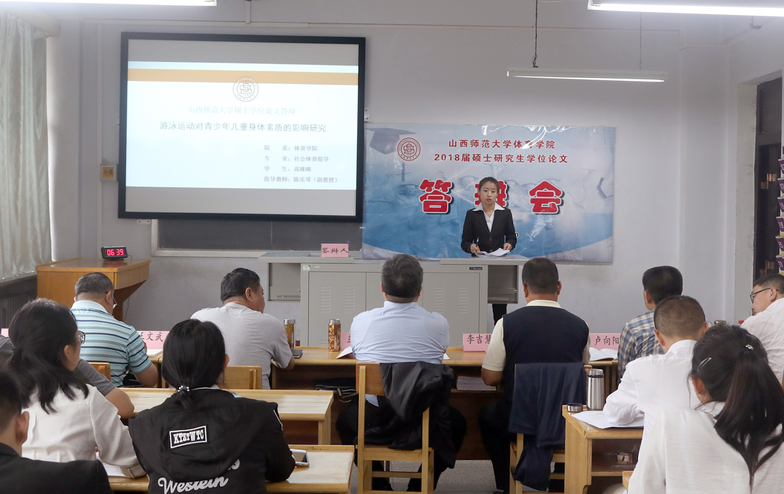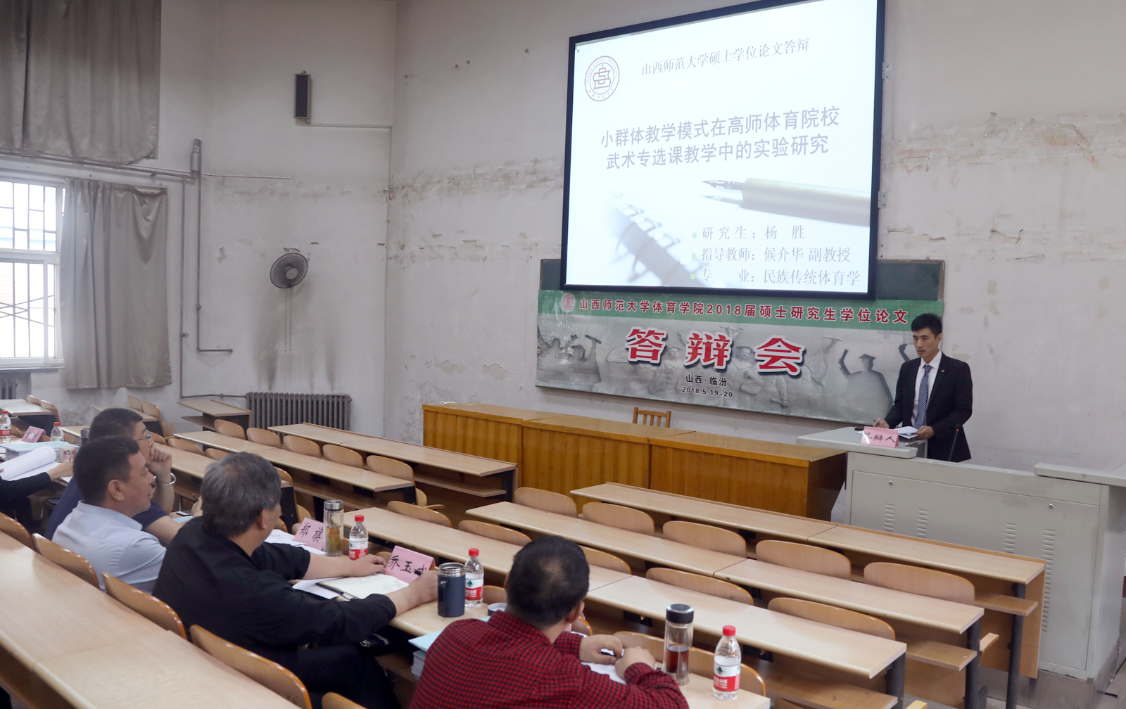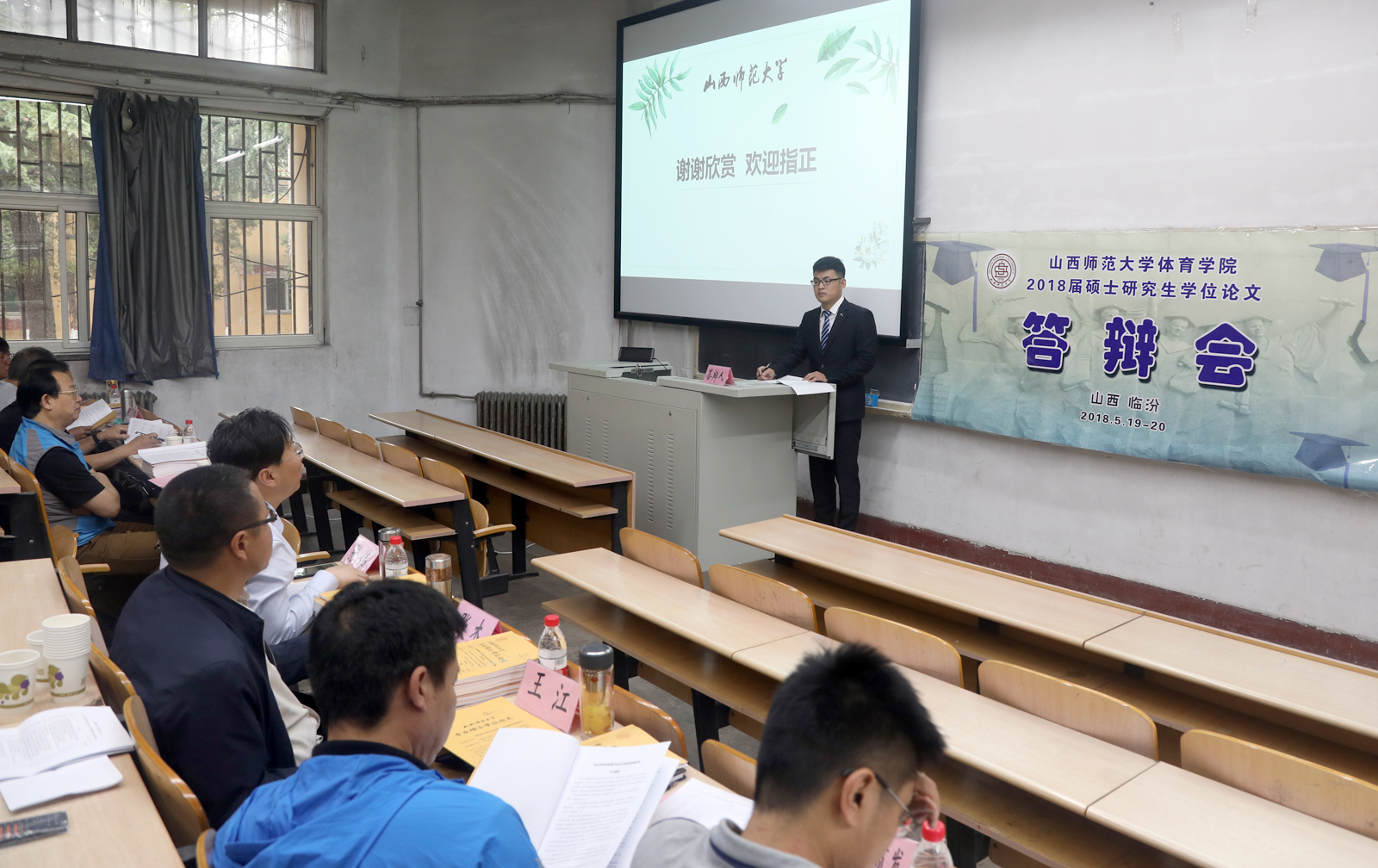 5月20日,PA游戏官网入口举行了2018届硕士研究生学位论文答辩会。答辩会共分为四组,有79名硕士研究生参加,其中上海PA游戏官网入口博士生导师刘兵教授担任体育学组答辩主席、首都PA游戏官网入口博士生导师刘海元教授担任体育硕士(体育教学)组答辩主席、山西大学博士生导师李金龙教授担任体育硕士(运动训练)组答辩主席、太原理工大学史冬博教授担任体育硕士(社会体育指导等)组答辩主席。全体硕士研究生和部分教师旁听了答辩。
