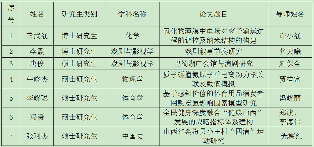 附名单:PA视讯官方网站2018年省优秀博士、硕士学位论文汇总表