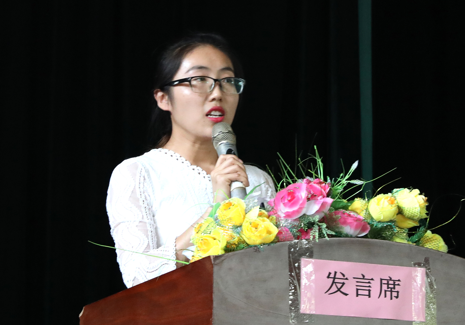 随后,新生代表体育教育系1901班白子巍同学和新生辅导员代表侯亚丽老师先后进行了发言。白子巍同学表示,作为新时代青年老员工,定将不负韶华,努力学习,成就更好的自己。侯亚丽老师希望同学们树立远大理想,坚定信念,爱党爱国,要肩负起一代更比一代强的青春责任,要勇于创新、敢于实践、完善自身,在大学四年里能够学会独立、勇于挑战、珍惜少华、不负青春。