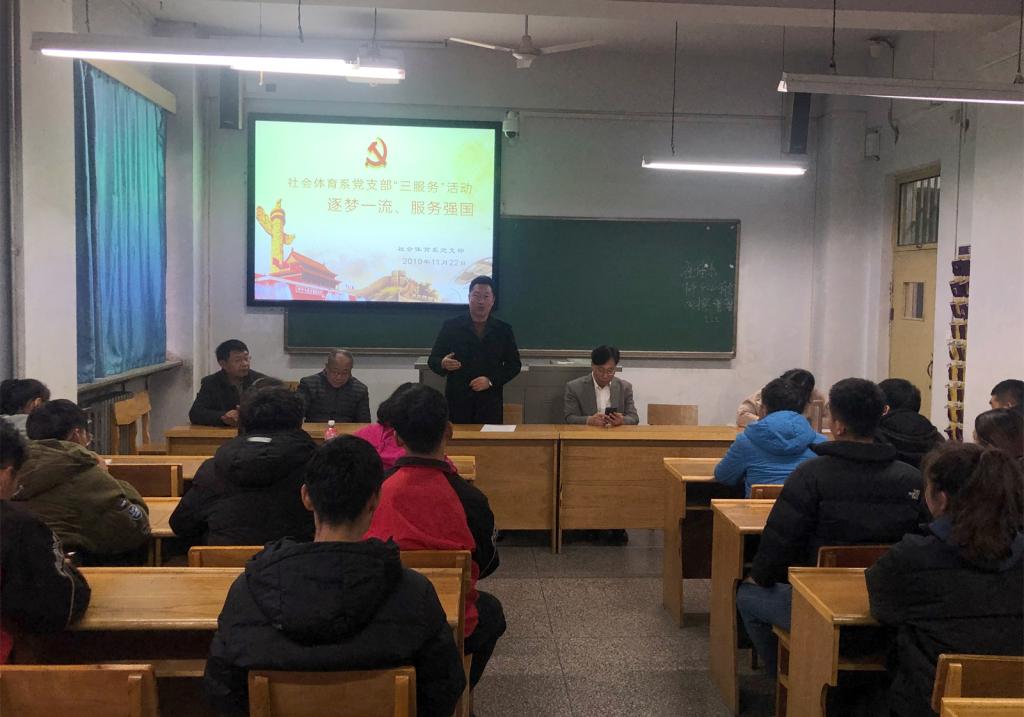 11月22日社会体育系党支部在PA游戏官网入口教学楼3教室开展“不忘初心、牢记使命”主题教育“三服务”活动,活动主题为“筑梦国内一流高校,服务体育强国战略”。本次服务对象为社会体育系2017级员工,目的在于启动社会体育系2017级员工考研倒计时“365天”仪式,进行考研动员指导。