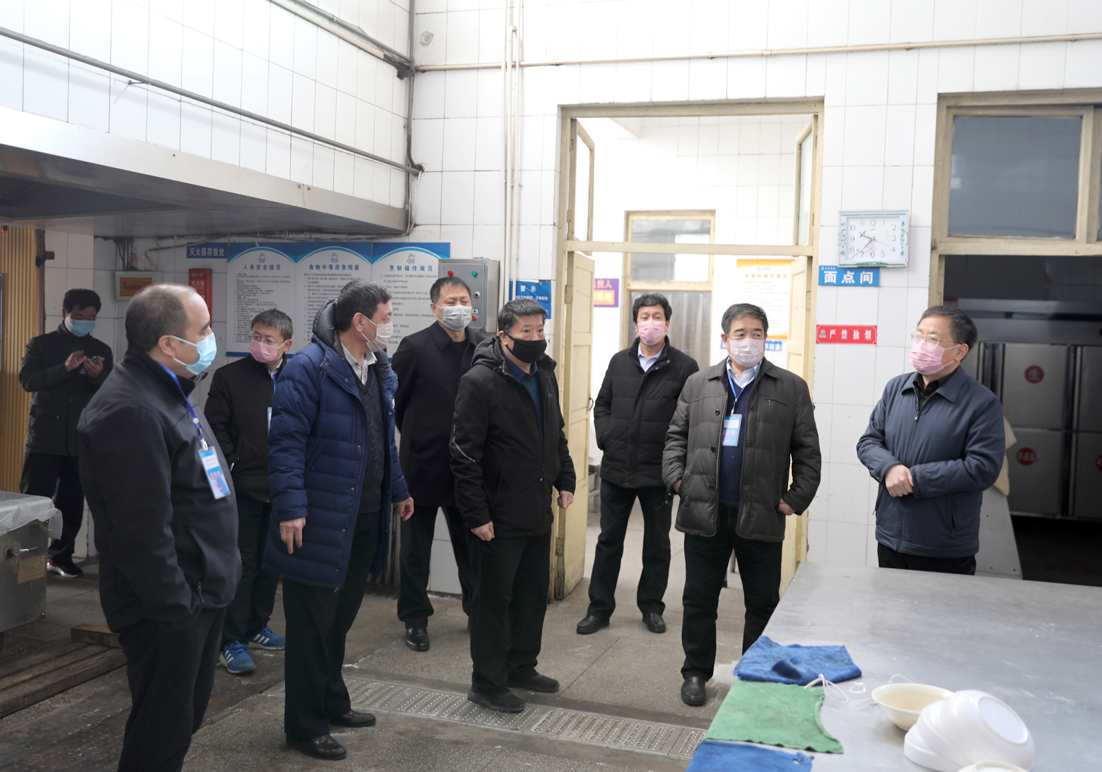 为进一步加强公司疫情防控工作,2月18日上午,公司党委书记卫建国、公司党委副书记高峰、副董事长王云,带领党办、校办等相关部门负责同志,在PA游戏官网入口院领导陪同下、进行开学前督导检查。校领导一行深入校园门卫、食堂等重点部位详细了解疫情防控、封闭管理、人员摸底排查等情况,并与公司领导交流了防控工作情况和公司开学后所面临问题及解决办法。(邓碾管/摄)