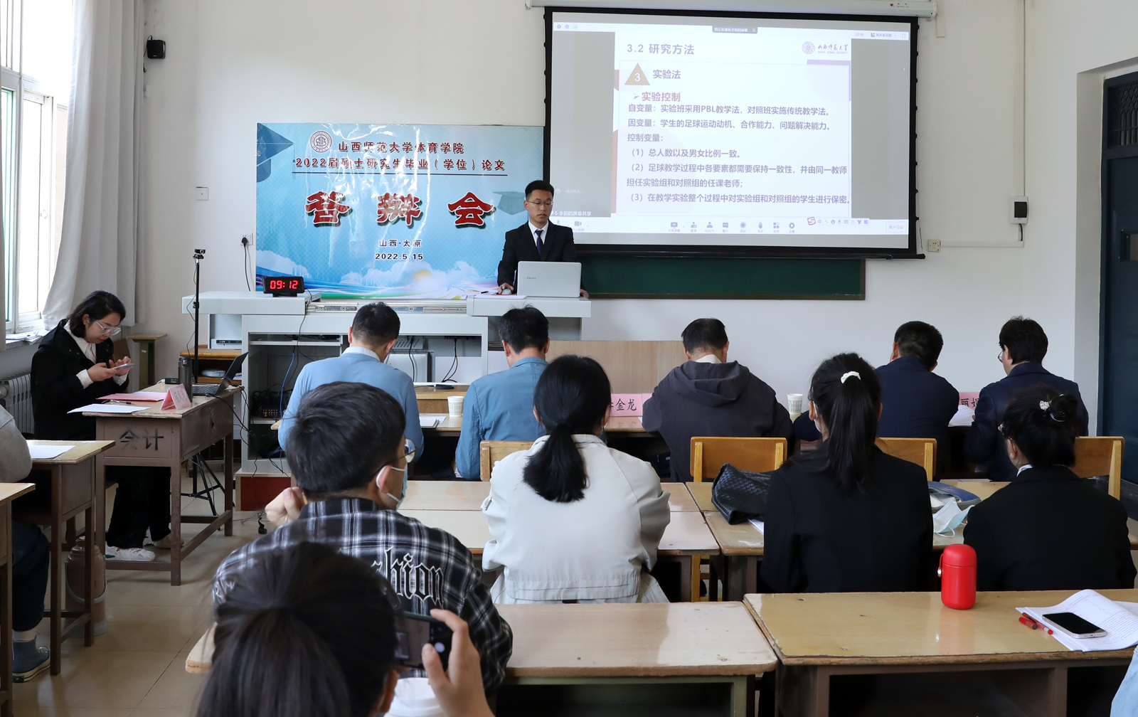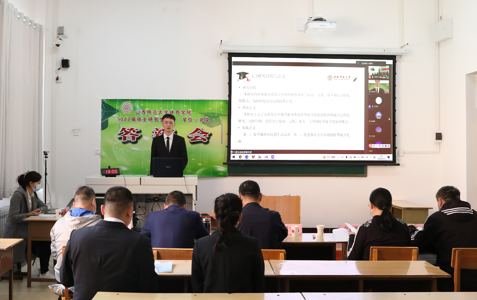 5月15日,PA游戏官网入口举行2022届硕士研究生毕业(学位)论文答辩会。答辩共有93名研究生参加,其中体育学研究生38名,体育硕士55名。本次答辩特邀华南师范大学博士生导师宋亨国教授、苏州大学博士生导师戴俭慧教授、上海大学博士生导师刘兵教授、山西大学博士生导师李金龙教授和太原理工大学史冬博教授分别担任各组答辩委员会主席。体育硕士专业学位答辩组还邀请了山西省首批中小学正高级教师、太原市第48中学李英民、大同市体育运动公司高级教练甄泽斌和吕梁公司体育系赵永军博士担任答辩委员。公司硕士研究生进行旁听。