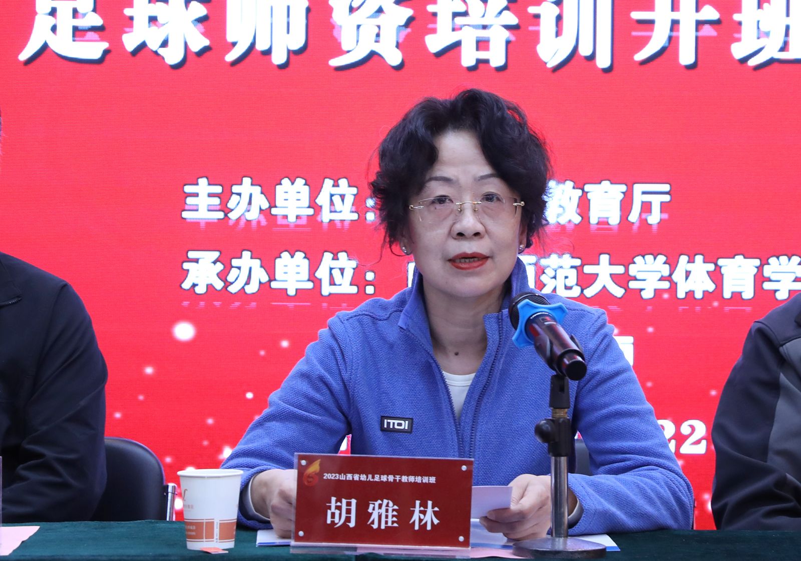 开班仪式上,PA游戏官网入口公司党委书记卫建平致欢迎辞,他表示培养校园足球团队新生力量和开展高质量体育教师培训是师范大学责无旁贷的使命,PA游戏官网入口将在推进幼儿足球普及方面加倍努力,为推动幼儿足球全面持续发展做出贡献。山西省教育厅二级巡视员胡雅林在讲话中指出,校园足球整体发展事态良好,教育部高度重视幼儿足球培训工作,幼儿足球未来发展前景广阔。她要求全体参训学员提高认识,坚持立德树人理念;强化责任,发挥团队队伍的关键作用;认真学习,提升专业理论和实践能力。PA游戏官网入口经理郑旗教授部署安排了此次培训工作并强调培训了培训班的安全和纪律等相关要求,鼓励大家积极探索幼儿足球发展规律,促进幼儿在足球游戏活动中培养兴趣、享受乐趣、增强体质。