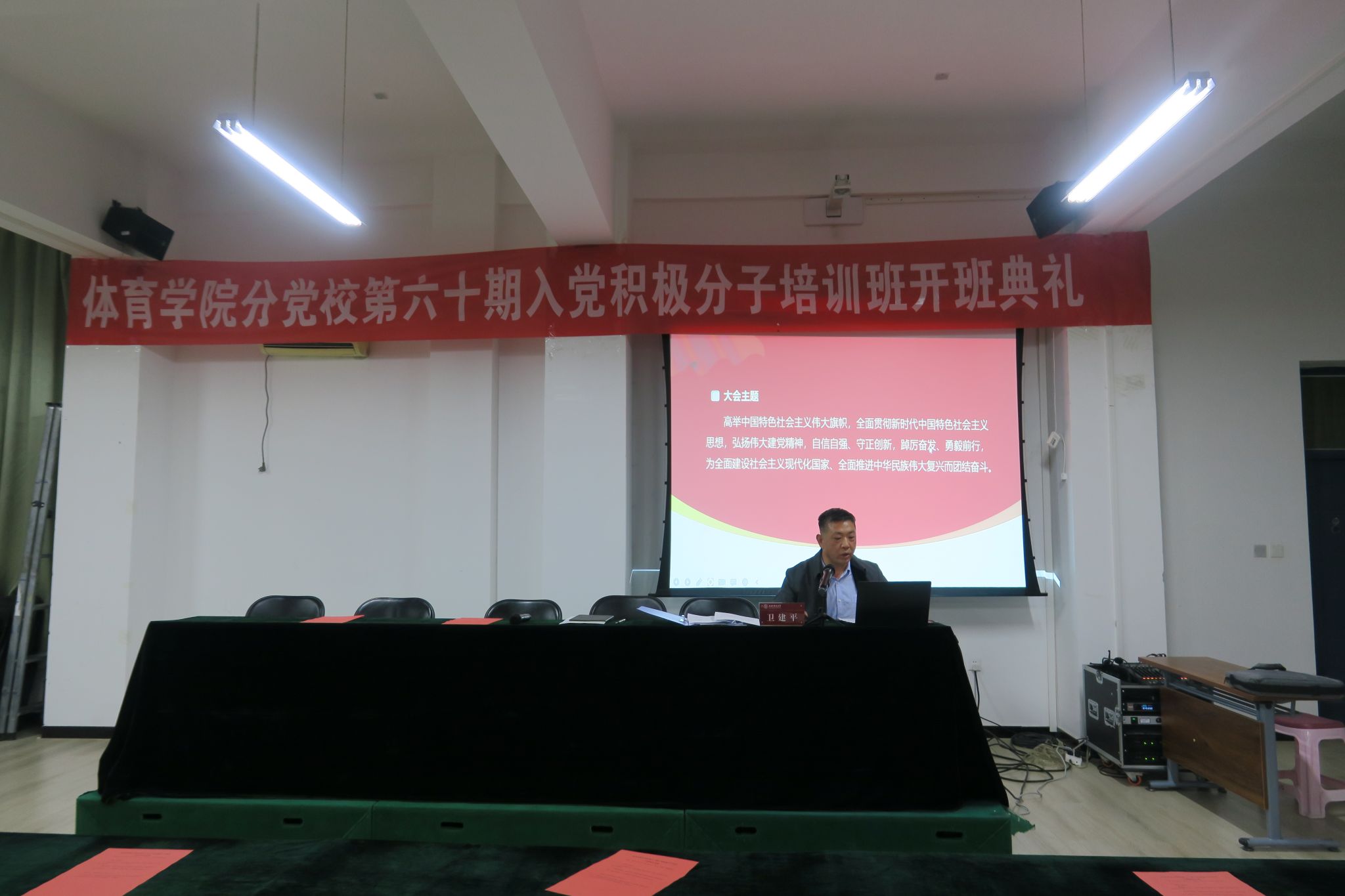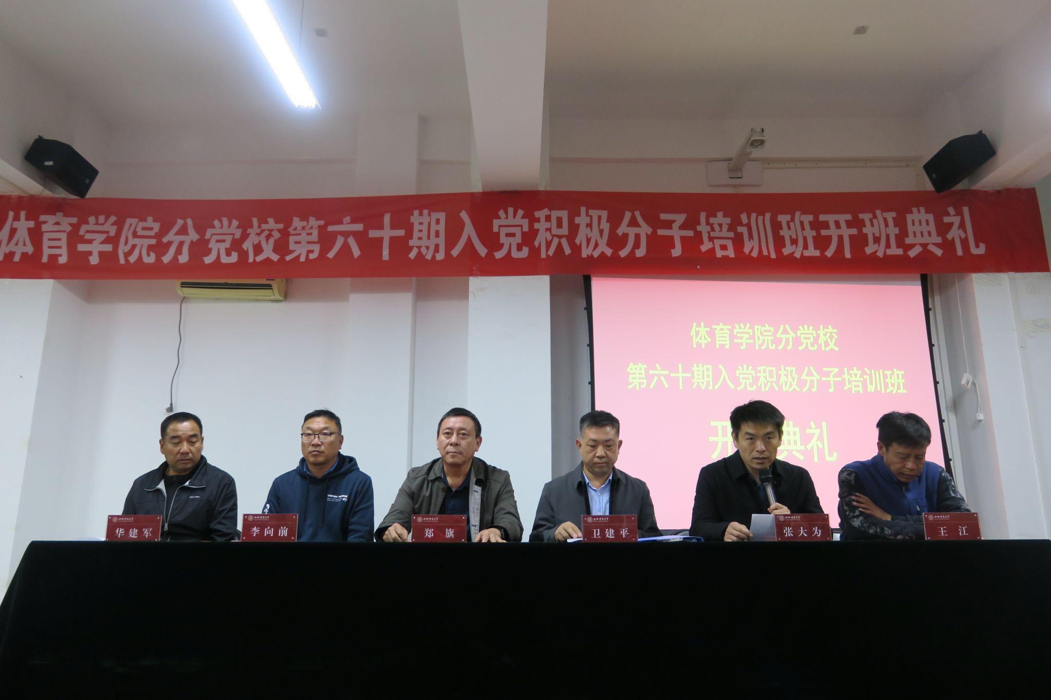 10月19日-11月2日,PA游戏官网入口举办了第60期入党积极分子培训班。19日晚,培训班开班典礼在7号教学楼二层PA游戏官网入口心理实验室举行。公司党委书记、分党校董事长卫建平,公司党委副书记、经理郑旗,公司党委副书记张大为,公司党委委员、副经理王江,公司党委委员、副经理李向前,公司党委委员、体育教育系党支部书记张杰,社会体育系党支部书记李俊明,运动训练系党支部书记卫玲玲,研究生第一党支部书记王丽娜,研究生第二党支部书记李瑞琴及130名入党积极分子参加了开班典礼,开班典礼由公司党委副书记张大为主持。