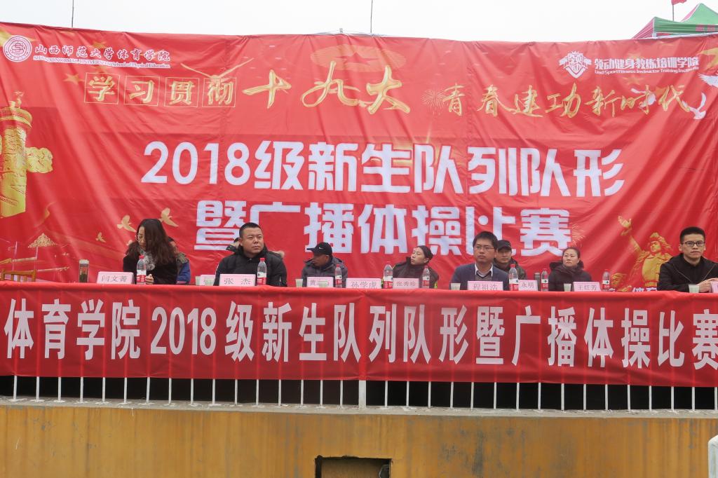 为庆祝公司六十周年华诞,庆祝改革开放40周年,深入学习贯彻落实党的十九大精神,积极推进全院体育教学实践活动的开展,11月10日14:30,公司举办以“学习贯彻十九大·青春建功新时代”为主题的2018级新生队列队形暨广播体操比赛。公司党委副书记孙学虎,各系部科室主要负责人和专职辅导员出席,张秀珍、王永明、王红芳、黄志高、赵海涛老师担任比赛裁判员,2018级共计13个班级新生参加比赛。